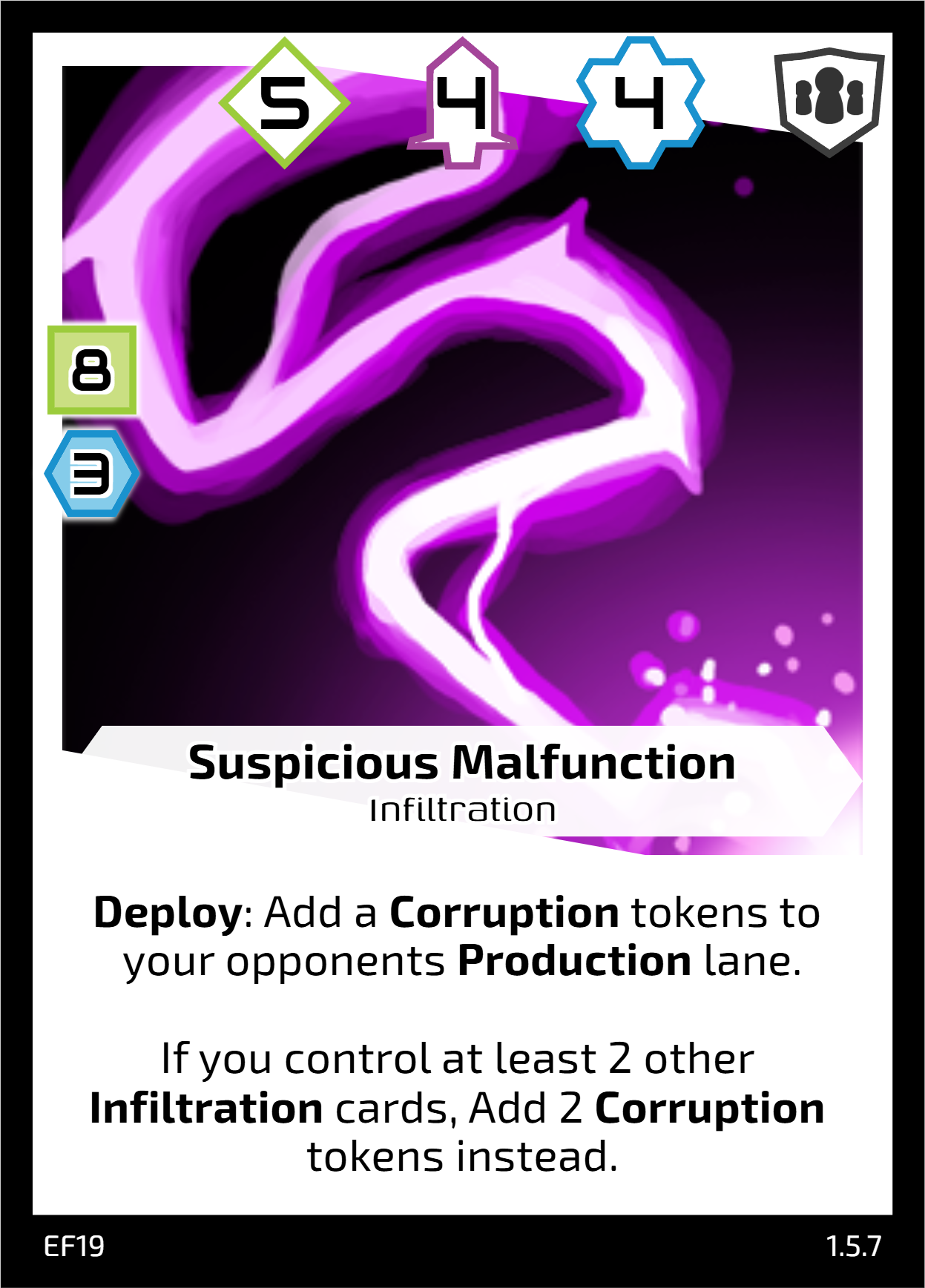 Each faction has a set of unqiue cards as well. These are more powerful that your Basic Troopers and have unique effects. When constructing a deck, you must use cards from the same faction. If you are unsure, the Faction is the letter part of the card ID in the bottom left corner. The current factions are [R, MM, CC, EF].